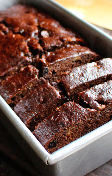 Preheat oven to 175°C. Lightly oil a 1lb loaf pan. In a small bowl, combine prunes and water. Microwave for 45 seconds and let set for 10 minutes. Purée prunes with water in a blender. In a bowl, beat together the prune purée, bananas, sugar, eggs and oil with an electric mixer until incorporated. In a separate bowl mix flour, cocoa powder, baking powder, baking soda and salt. Add to the prune mixture and stir to combine. Fold in the Diced Prunes and chocolate chips. Pour the batter into the prepared pan and bake until a cake tester inserted into the centre of the loaf comes out clean, about 50 minutes. Cool in the pan for 10 minutes. Turn the loaf out onto a wire rack and cool completely.